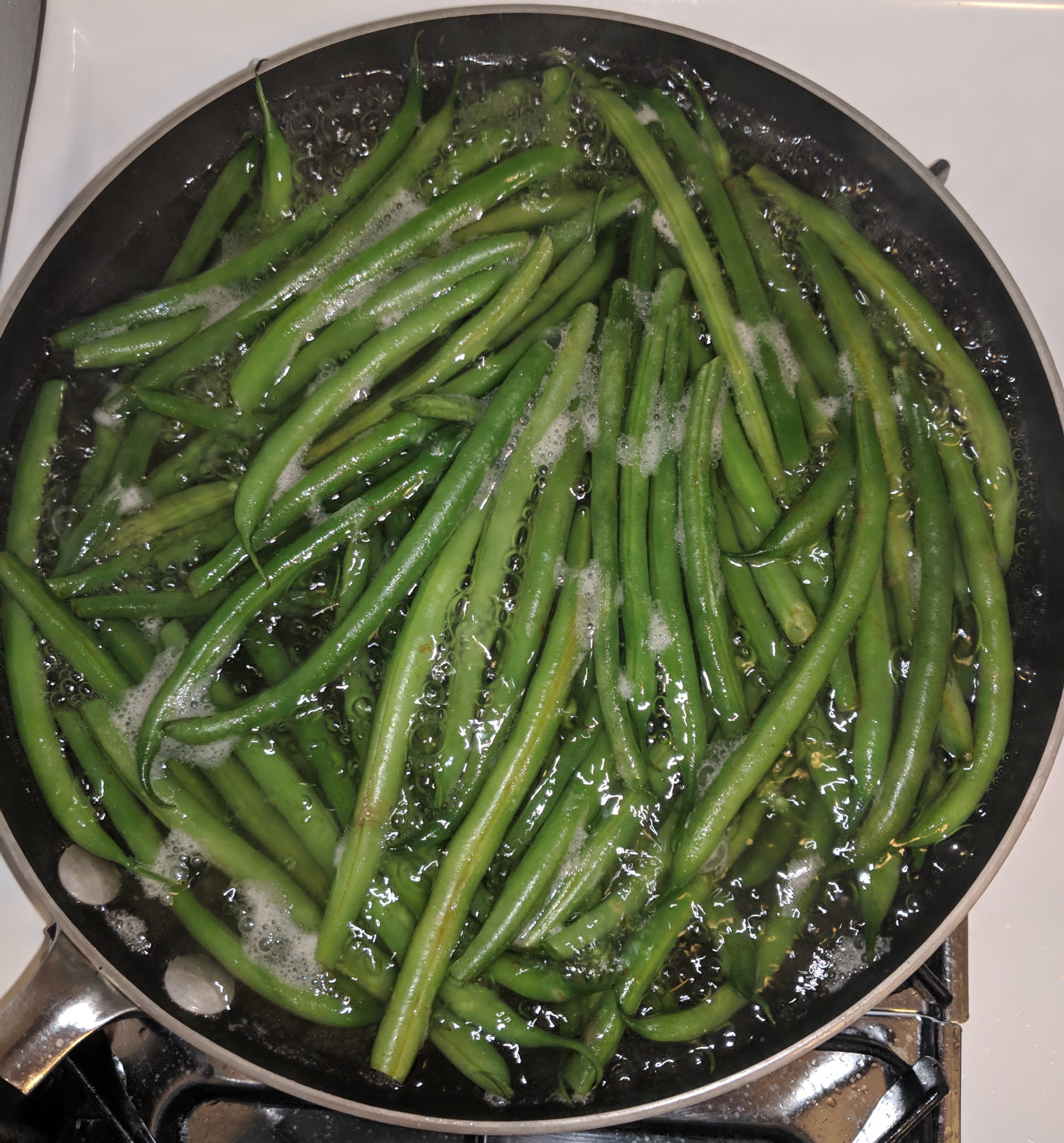 I was pretty lazy and I just boiled/simmered my green beans. I put them in a pan with water, brought them to a boil, them let them simmer for about 5 minutes.